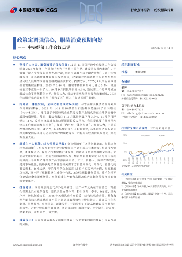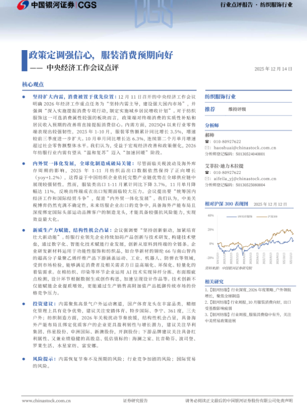 【银河证券】【202512】政策定调强信心,服装消费预期向好——中央经济工作会议点评-2页