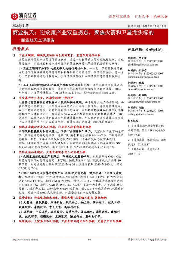 【浙商证券】【202512】商业航天:迎政策产业双重拐点,聚焦火箭和卫星龙头标的-3页