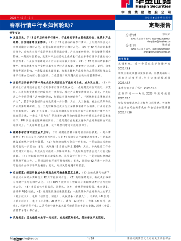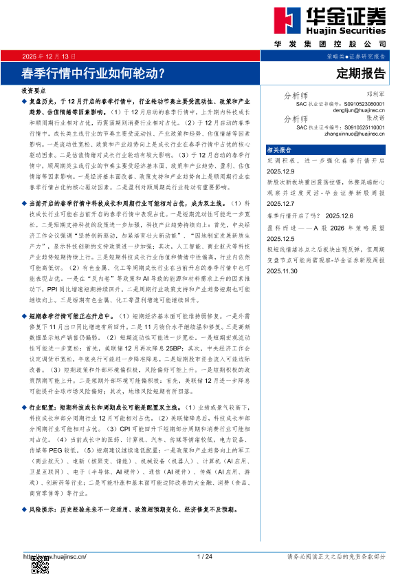 【华金证券】【202512】春季行情中行业如何轮动?-24页