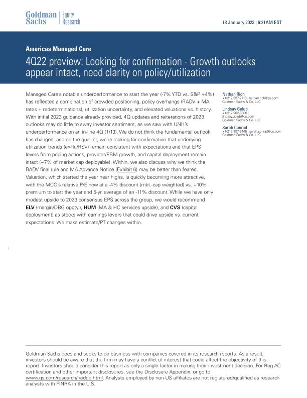【Goldman Sachs】【20230118】4Q22 preview Looking for confirmation - Growth outlooks appear intact, need clarity on policy/utilization-19页