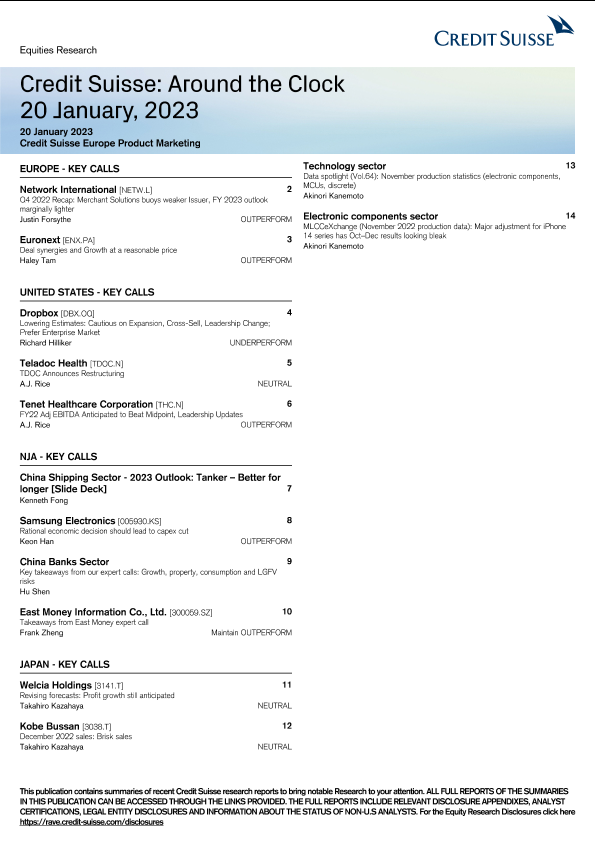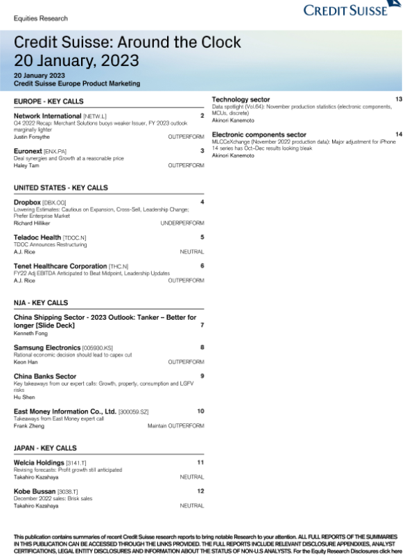 【Credit Suisse】【20230120】Credit Suisse Around the Clock-14页
