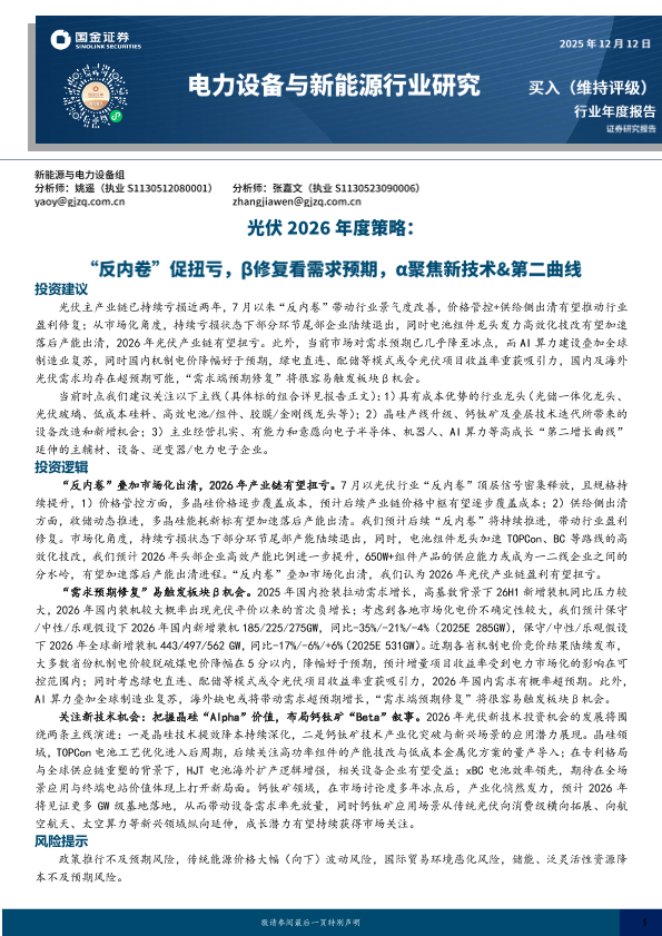 【国金证券】【202512】光伏2026年度策略_反内卷_促扭亏_β修复看需求预期_α聚焦新技术_第二曲线-40页