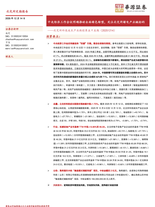 【华源证券】【202512】中央经济工作会议明确推动全面绿色转型,关注北交所绿电产业链标的——北交所科技成长产业跟踪第五十五期(20251214)-21页