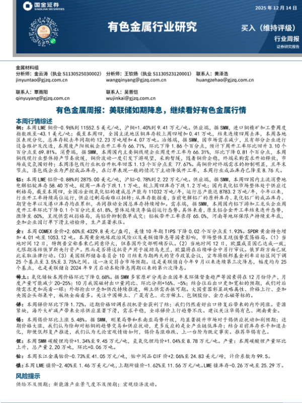 【国金证券】【202412】有色金属行业研究:美联储如期降息,继续看好有色金属行情-16页
