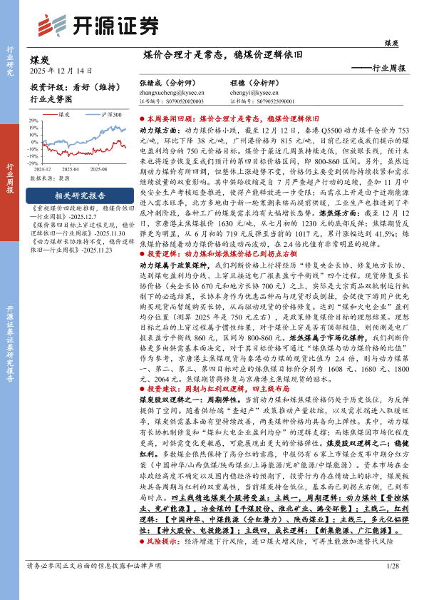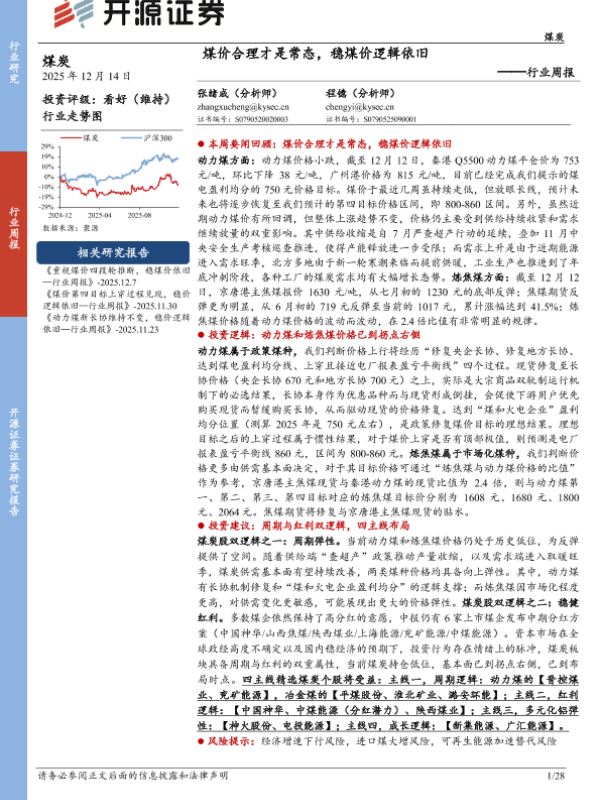 【开源证券】【202512】煤价合理才是常态,稳煤价逻辑依旧——行业周报-28页