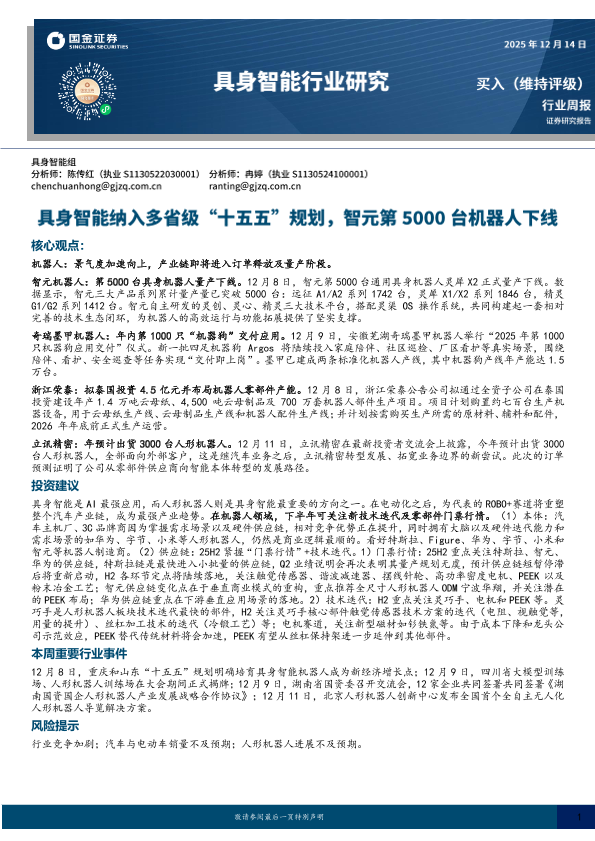 【国金证券】【202512】具身智能行业研究:具身智能纳入多省级“十五五”规划,智元第5000台机器人下线-10页