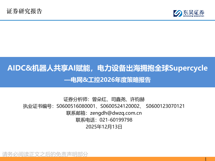 【东吴证券】【202512】AIDC&机器人共享AI赋能,电力设备出海拥抱全球Supercycle-78页