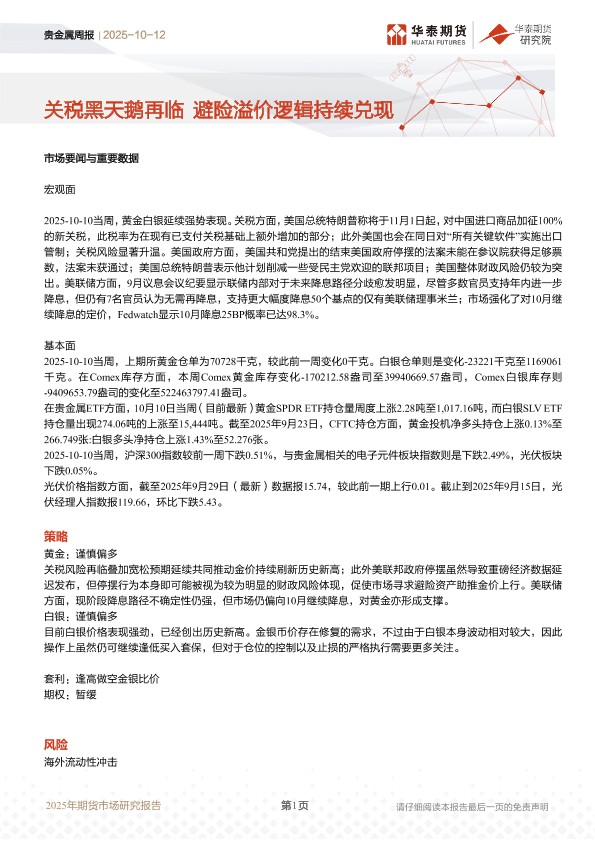【华泰期货】【202510】贵金属周报 | 关税黑天鹅再临 避险溢价逻辑持续兑现-7页