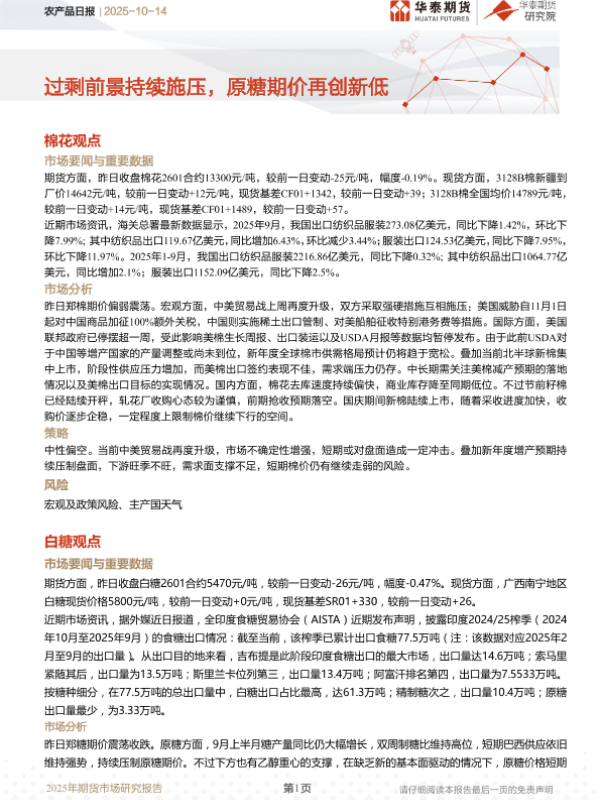 【华泰期货】【202510】农产品日报 | 2025-10-14-9页