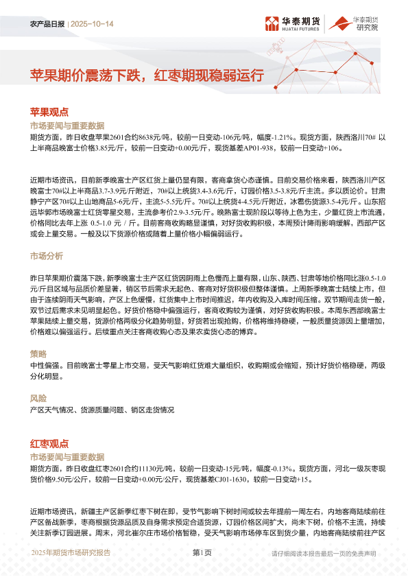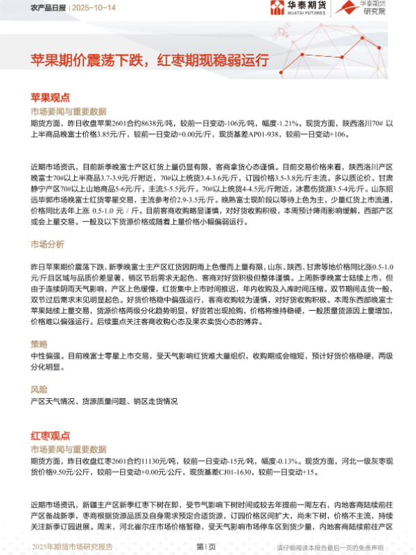【华泰期货】【202510】农产品日报_苹果期价震荡下跌_红枣期现稳弱运行-10页