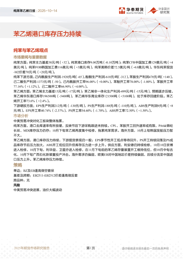【华泰期货】【202510】纯苯苯乙烯日报 | 2025-10-14-14页
