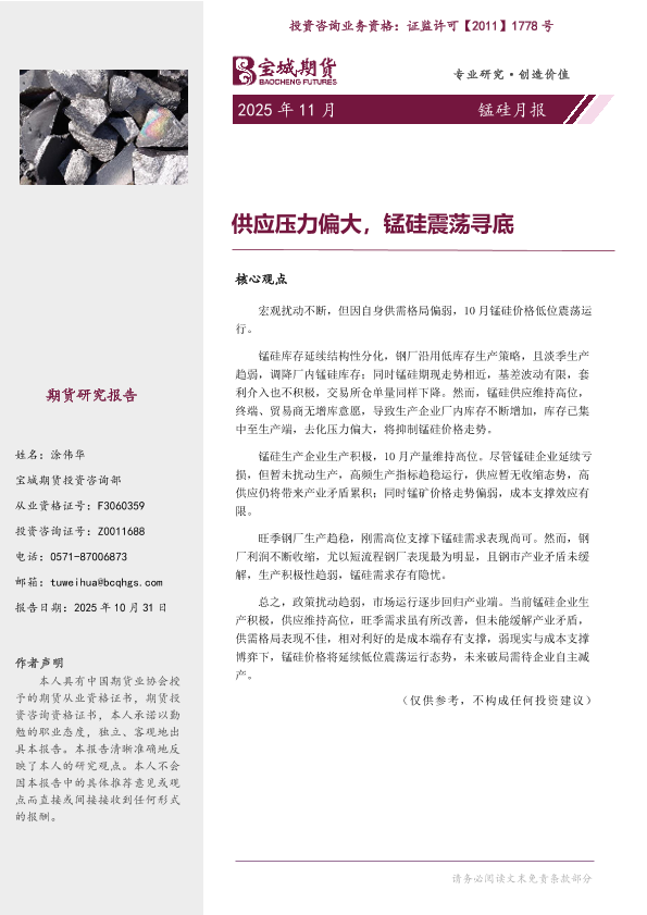 【宝城期货投资咨询部】【202510】供应压力偏大,锰硅震荡寻底-13页