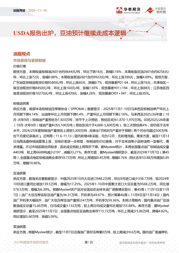 【华泰期货】【202511】油脂周报 | 2025-11-16-11页