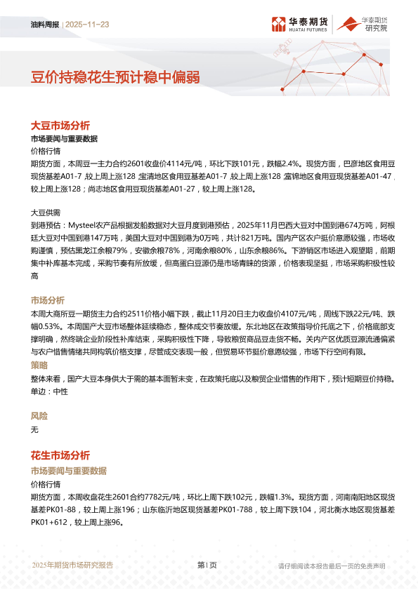 【华泰期货】【202511】油料周报 | 豆价持稳花生预计稳中偏弱-9页