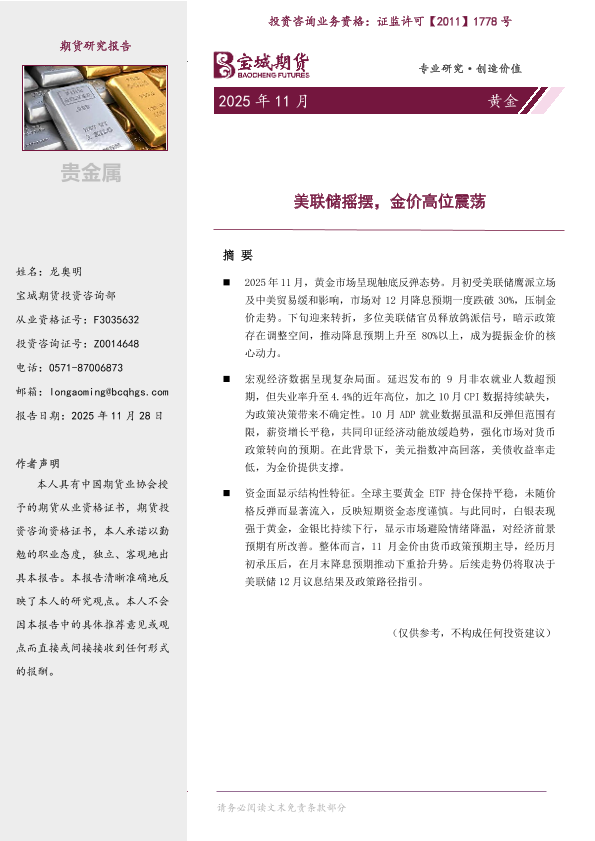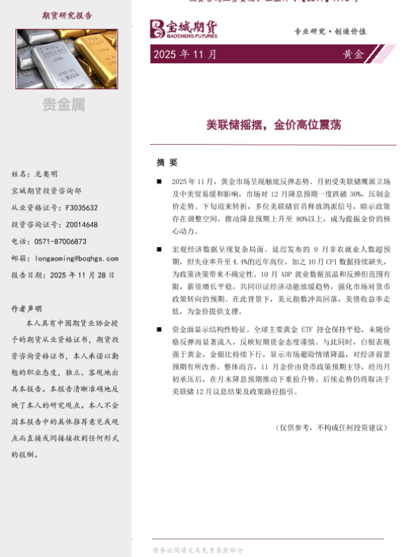 【宝城期货投资咨询部】【202511】黄金 | 月报-12页