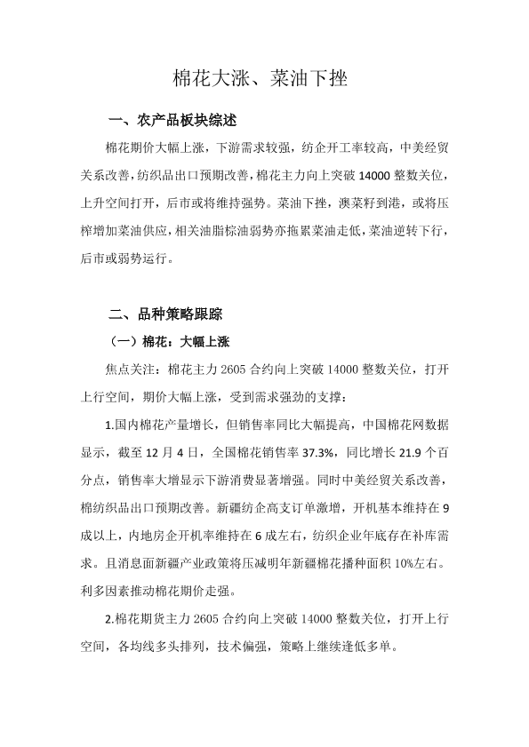 【天富期货有限公司】【202512】棉花大涨、菜油下挫-7页
