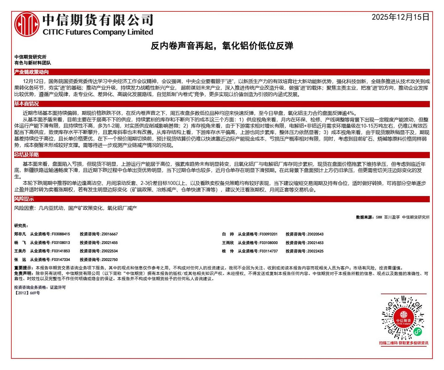 【中信期货】【202312】反内卷声音再起,氧化铝价低位反弹-1页
