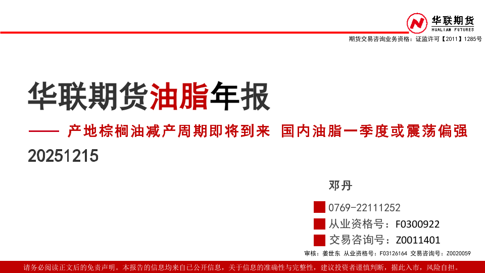 【华联期货】【202512】产地棕榈油减产周期即将到来国内油脂一季度或震荡偏强-35页