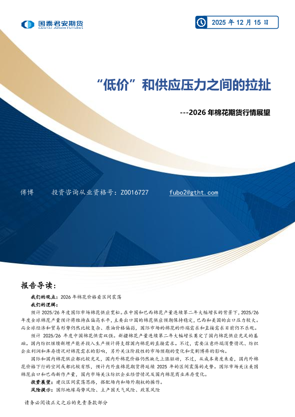 【国泰君安期货】【202512】2026年棉花期货行情展望-21页