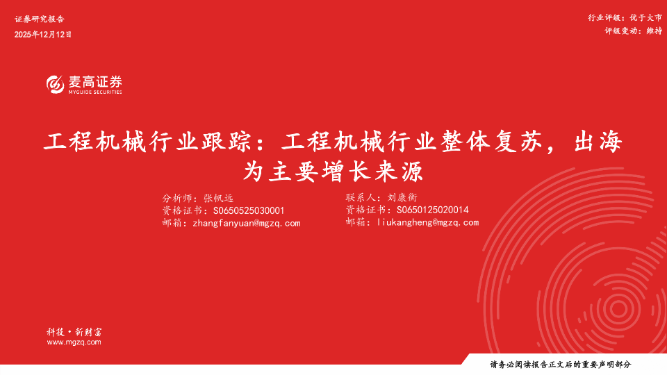 【麦高证券】【202512】工程机械行业跟踪:工程机械行业整体复苏,出海为主要增长来源-28页