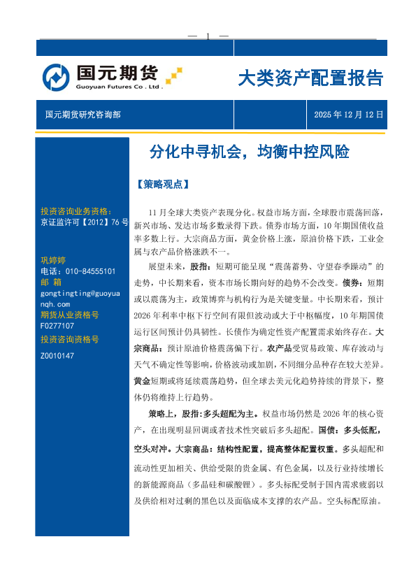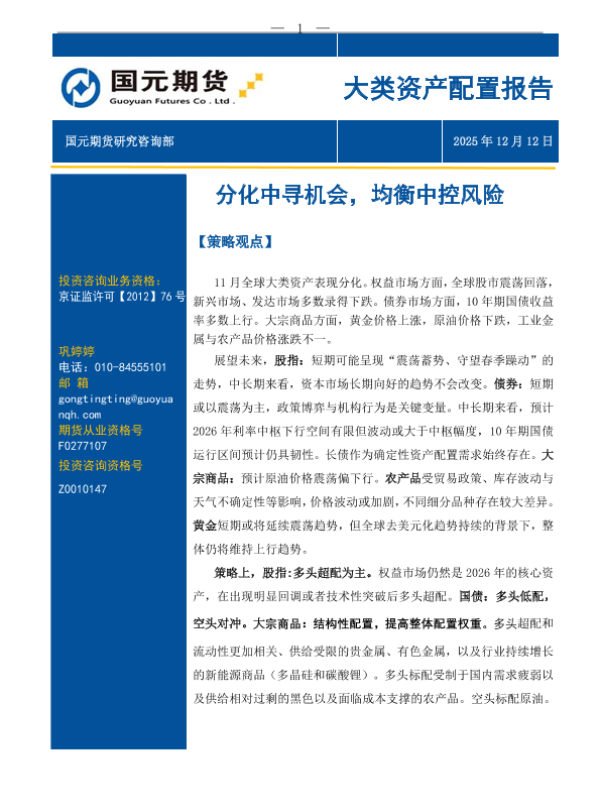 【国元期货】【202512】大类资产配置报告_分化中寻机会_均衡中控风险-12页
