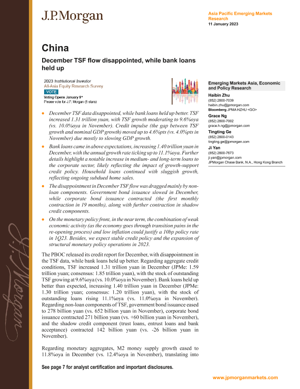 【J.P. Morgan】【20230111】gan Econ FI-China December TSF flow disappointed, while bank loans held up-10页