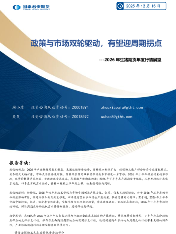 【国泰君安期货】【202512】2026年生猪期货年度行情展望-12页