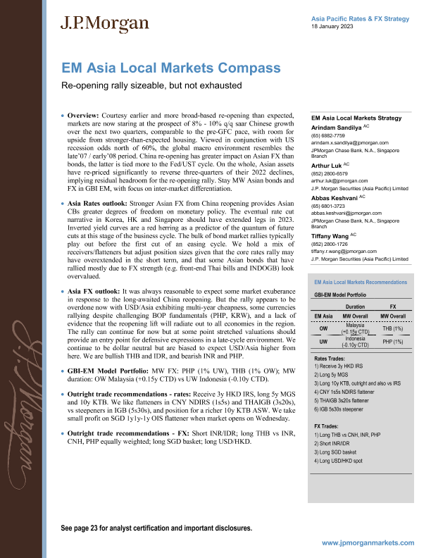 【J.P. Morgan】【20230118】EM Asia Local Markets Compass Re-opening rally sizeable, but not exhausted-27页