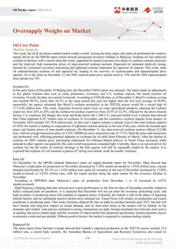 【华泰期货】【202512】Oil Weekly report| Oversupply Weighs on Market-9页