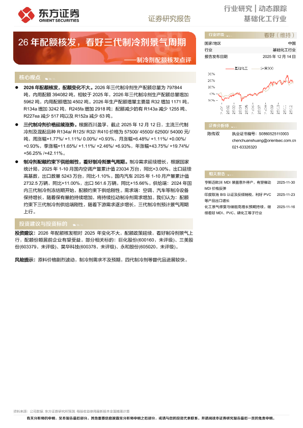 【东方证券】【202512】26年配额核发,看好三代制冷剂景气周期——制冷剂配额核发点评-3页
