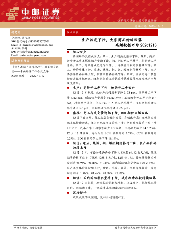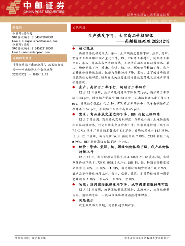 【中邮证券】【202512】生产热度下行,大宗商品价格回落——高频数据跟踪-13页