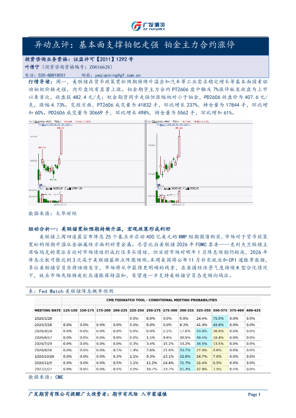 【广发期货】【202411】异动点评:基本面支撑铂钯走强铂金主力合约涨停-4页