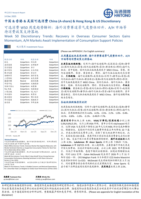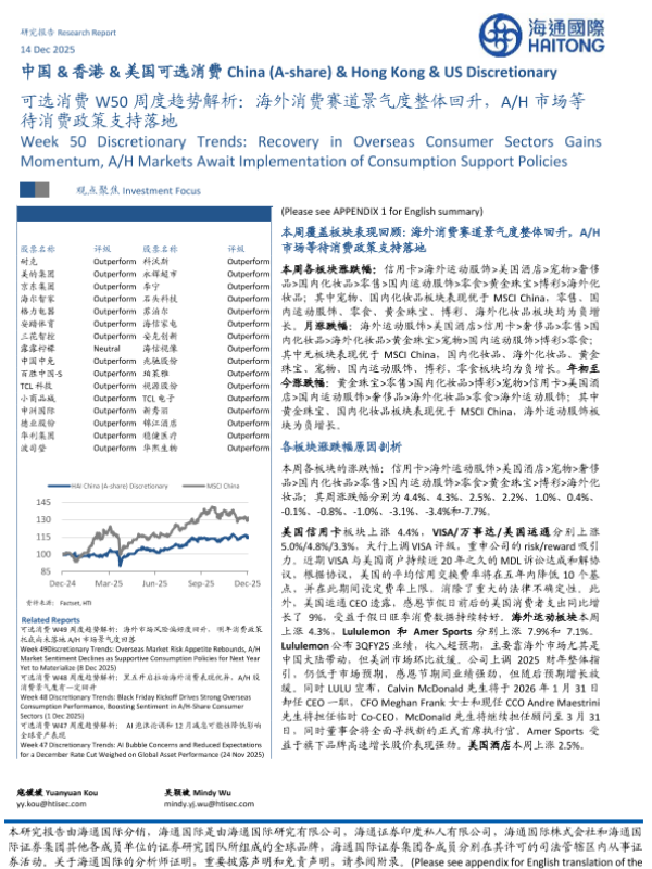 【海通国际】【202512】可选消费W50周度趋势解析:海外消费赛道景气度整体回升,A/H市场等待消费政策支持落地-16页