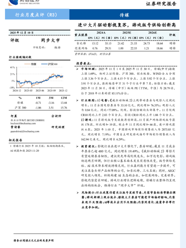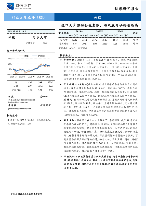 【财信证券】【202512】传媒行业2025年12月10日:进口大片驱动影视复苏,游戏版号供给创新高-14页