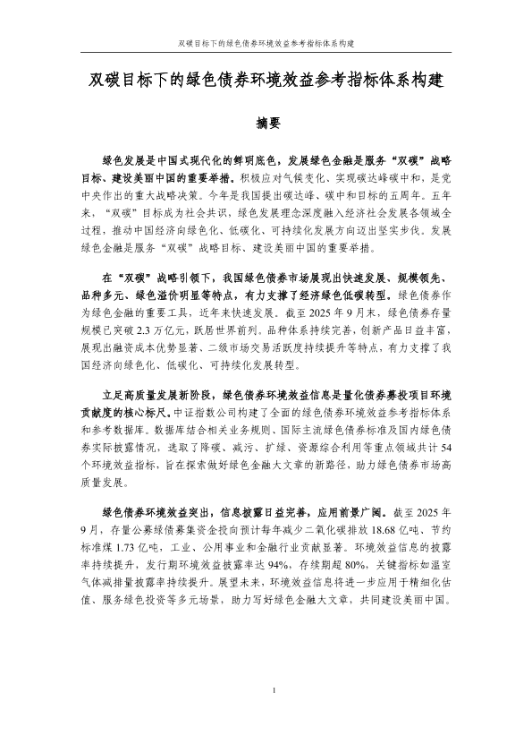 【中证指数公司】【2025】双碳目标下的绿色债券环境效益参考指标体系构建-10页