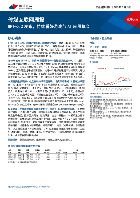 【国信证券】【202512】传媒互联网周报:GPT-5.2发布,持续看好游戏与AI应用机会-13页