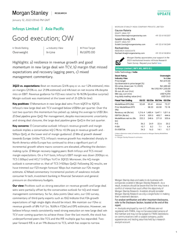 【Morgan Stanley】【20230112】Infosys Limited Good execution; OW-16页
