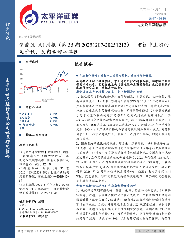 【太平洋证券】【202512】新能源+A I周报(第35期20251207-20251213):重视中上游的定价权,反内卷增加弹性-18页