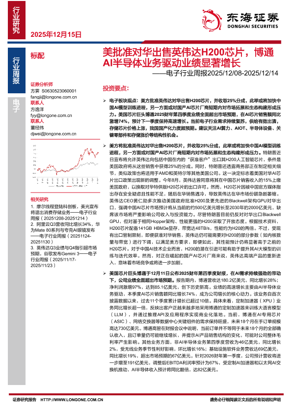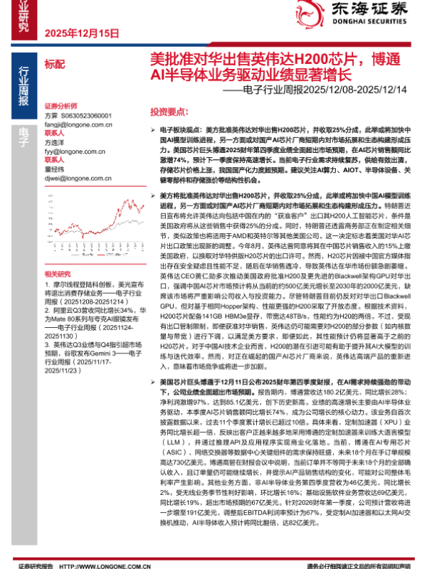 【东海证券】【202512】美批准对华出售英伟达H200芯片,博通AI半导体业务驱动业绩显著增长-14页