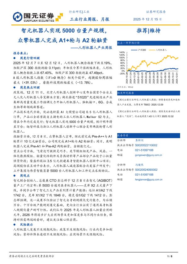 【国元证券】【202512】人形机器人产业周报:智元机器人实现5000台量产规模,众擎机器人完成A1+轮与A2轮融资-8页