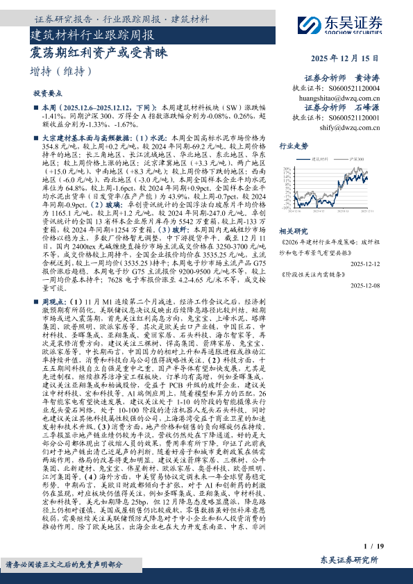 【东吴证券】【202512】建筑材料行业跟踪周报:震荡期红利资产或受青睐-19页