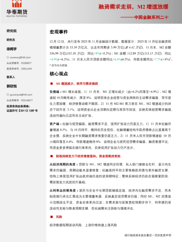【华泰期货】【202512】中国金融系列二十_融资需求走弱_M2增速放缓-7页