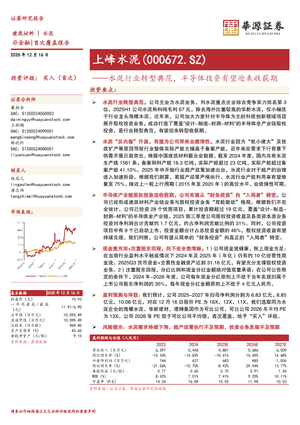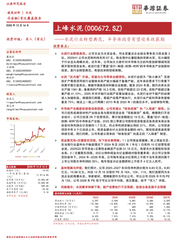 【华源证券】【202512】水泥行业转型典范,半导体投资有望迎来收获期-19页