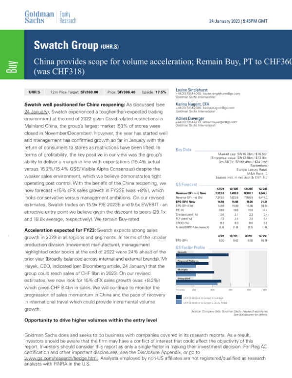 【Goldman Sachs】【20230124】Swatch Group China provides scope for volume acceleration; Remain Buy, PT to CHF360 (was CHF318)-12页