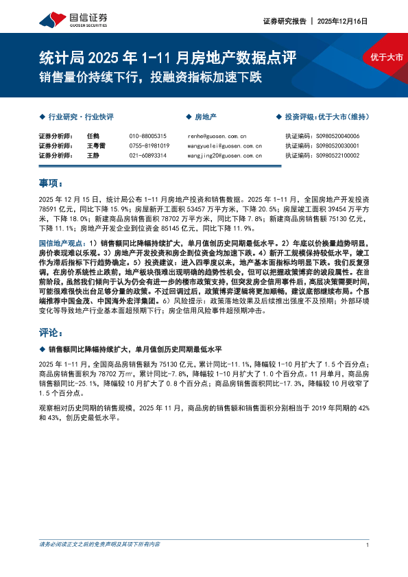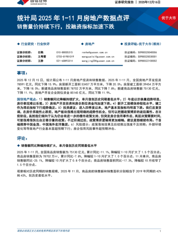 【国信证券】【202512】统计局2025年1-11月房地产数据点评_销售量价持续下行_投融资指标加速下跌-10页