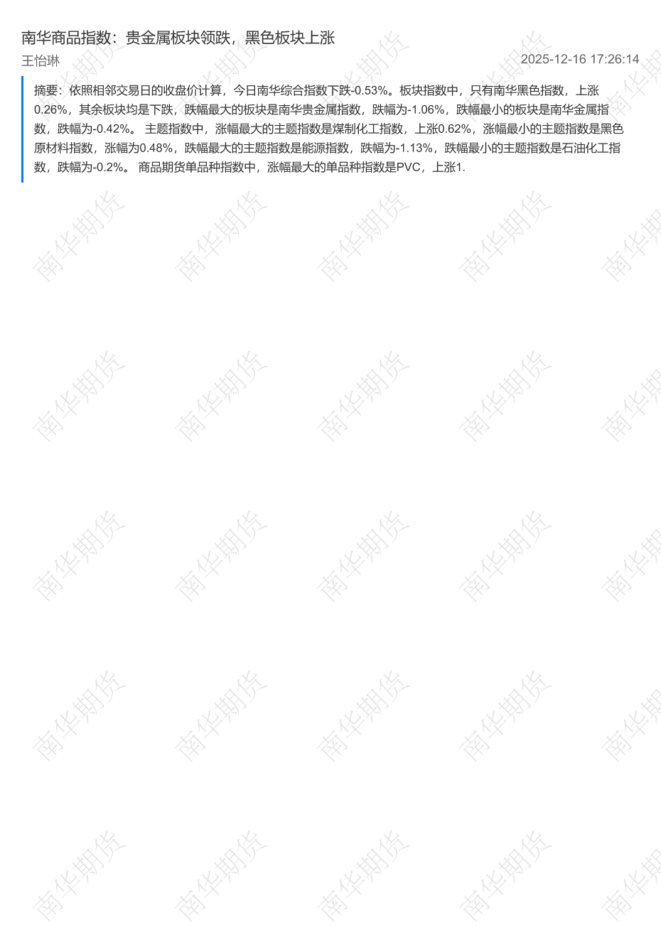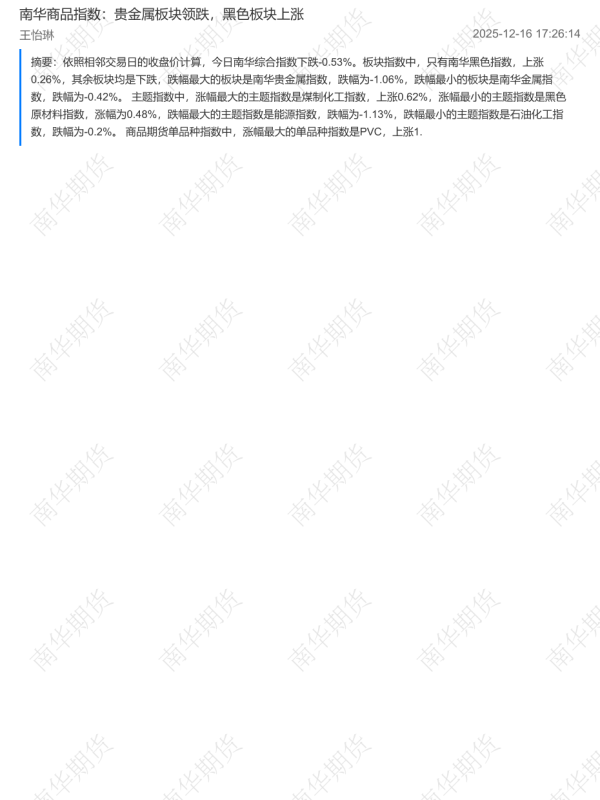 【南华期货】【202512】南华商品指数:贵金属板块领跌,黑色板块上涨-2页