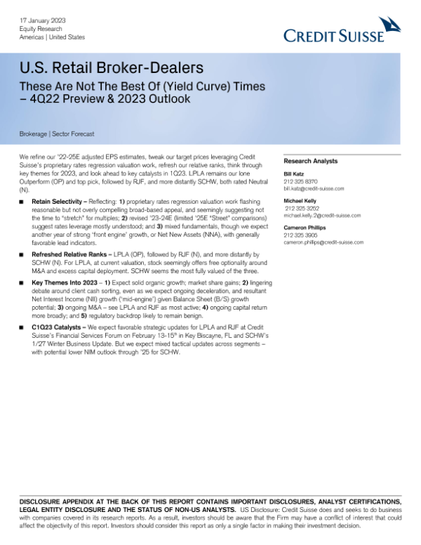 【Credit Suisse】【20230117】U.S. Retail Broker-Dealers These Are Not The Best Of(Yield Curve) Times – 4Q22 Preview & 2023 Outlook-27页