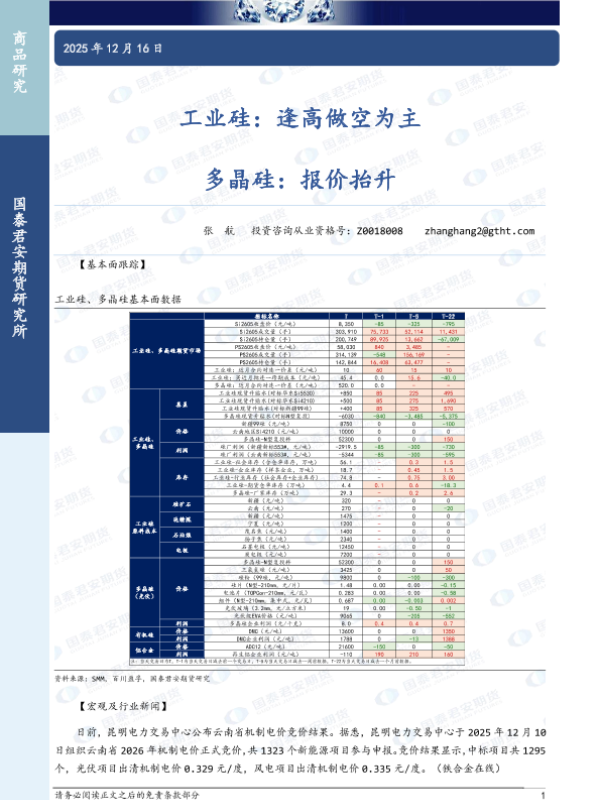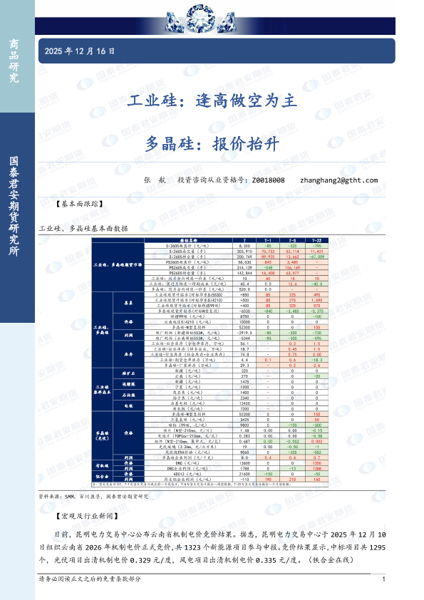 【国泰君安期货】【202512】工业硅:逢高做空为主 多晶硅:报价抬升-3页