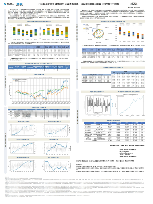 【国金证券】【202512】20251209-国金证券-行业风格轮动双周度跟踪_大盘均衡风格_边际增持电新和美容(2025年12月09期)-1页
