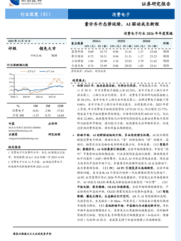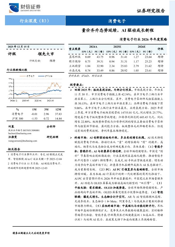 【财信证券】【202512】消费电子行业2026年年度策略_量价齐升态势延续_AI驱动成长新程-25页